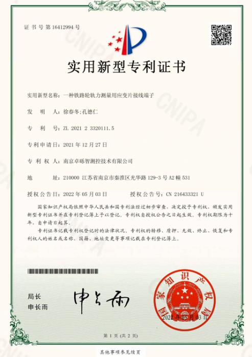 一種鐵路輪軌力測量用應變片接線端子